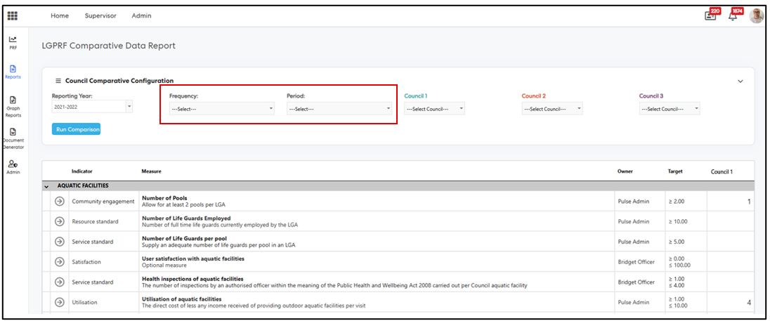 Comparative Data Report - New filter criteria has been introduced: Frequency + Period filters are mandatory to be used together. This functions as follows;