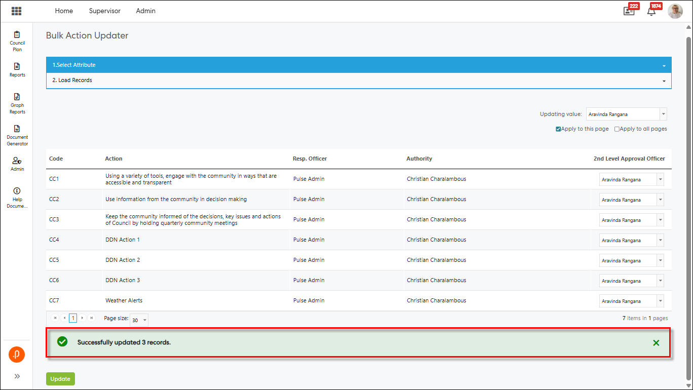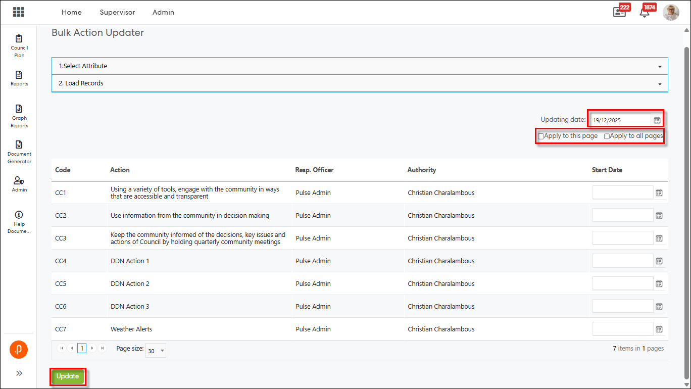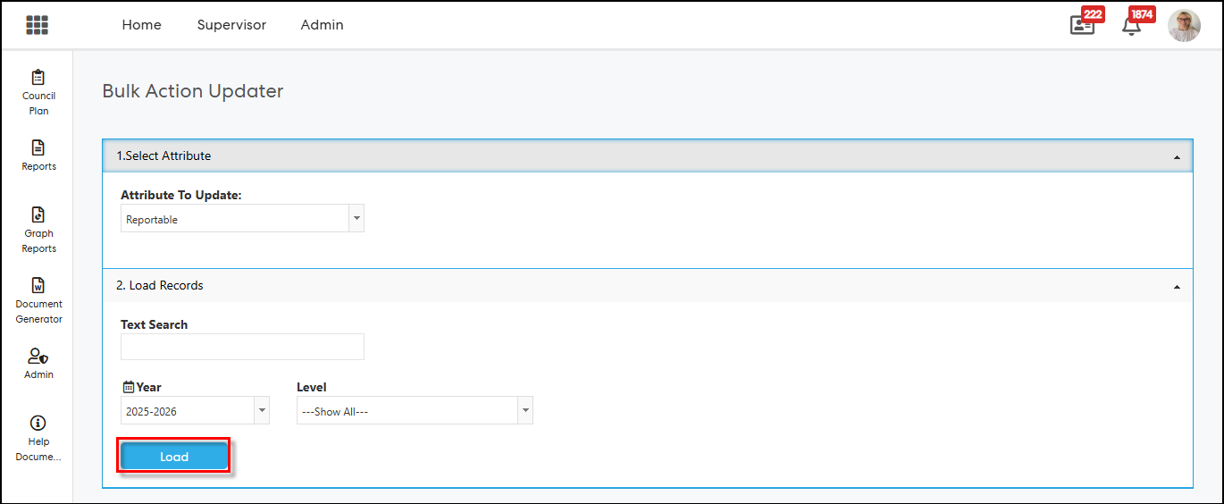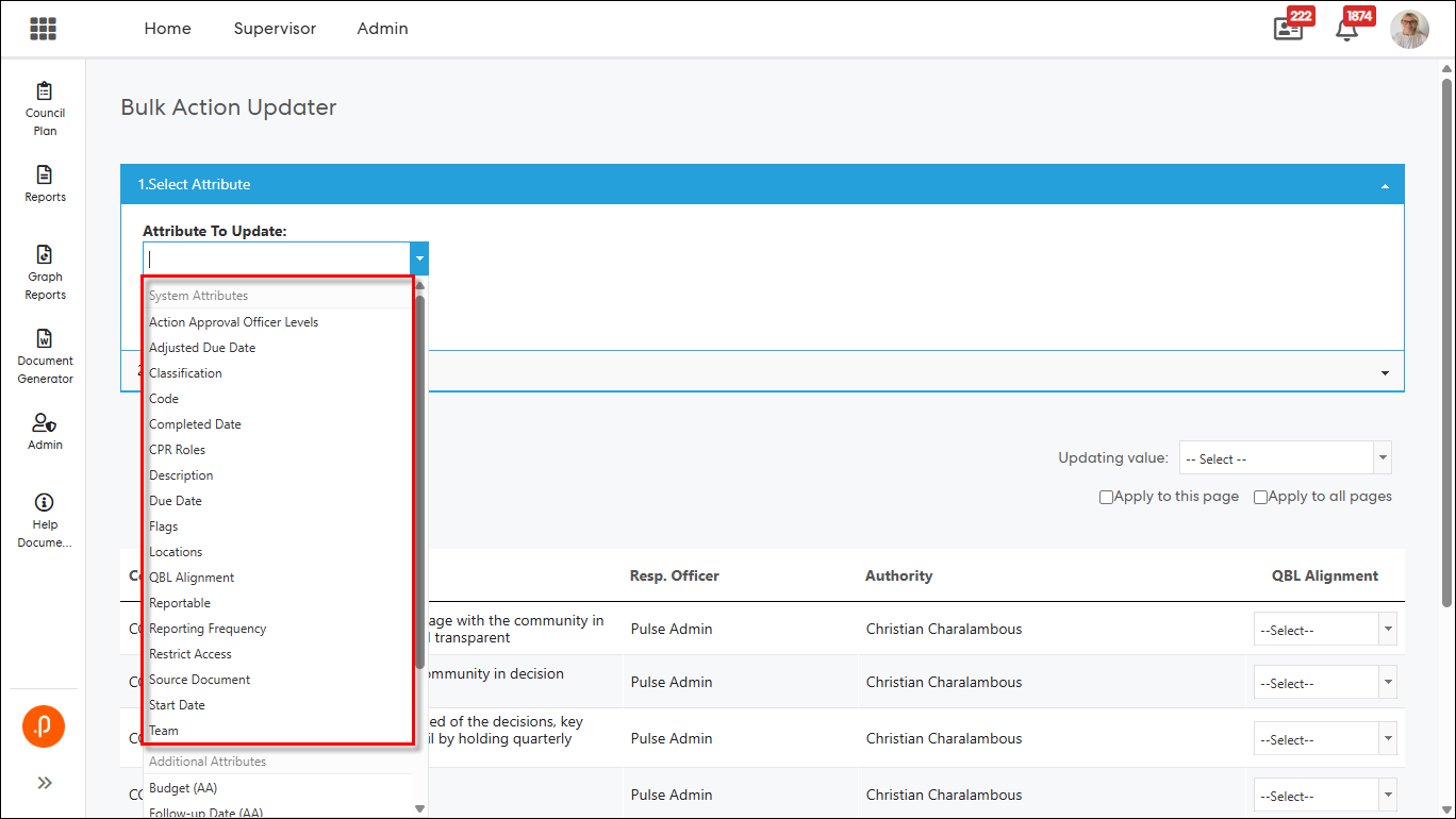 1.1 Bulk Action Updater – Extended Attribute SupportThe Bulk Action Updater has been enhanced to support all action attributes available on the Action Add/Edit screen, allowing administrators to efficiently update multiple actions without editing them individually.