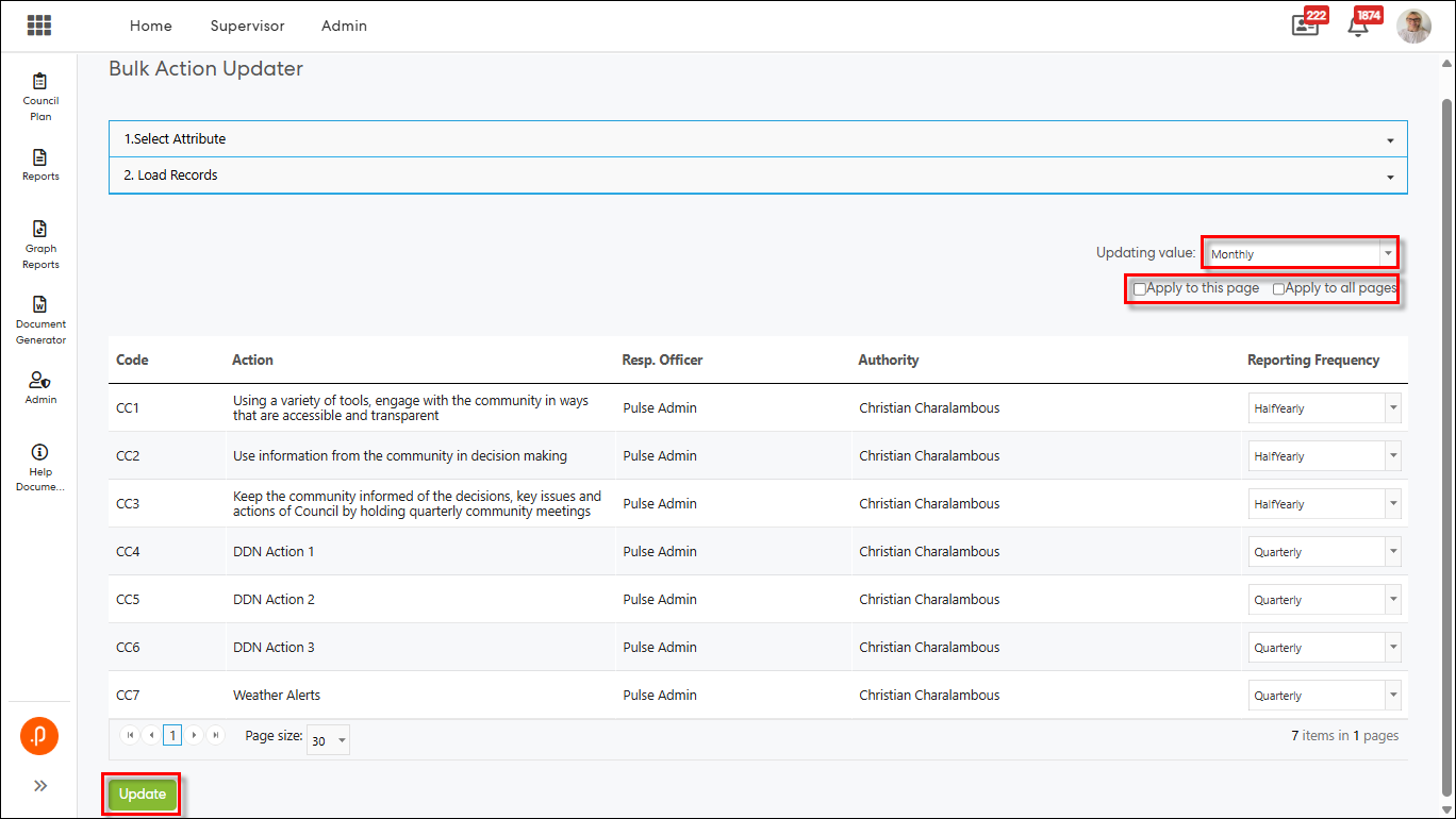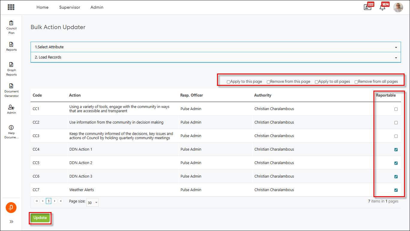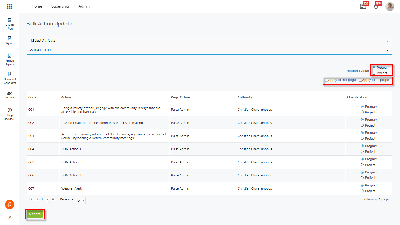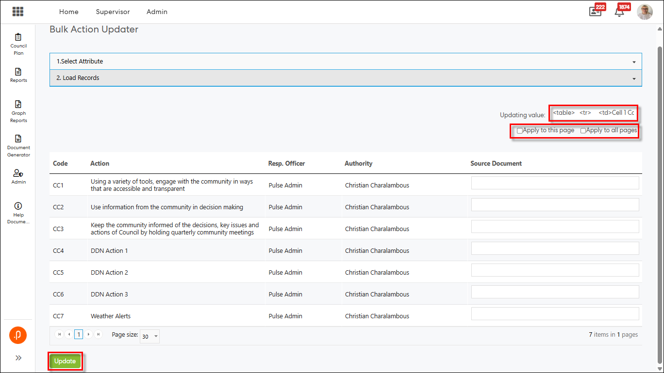 1.1 Bulk Action Updater – Extended Attribute SupportThe Bulk Action Updater has been enhanced to support all action attributes available on the Action Add/Edit screen, allowing administrators to efficiently update multiple actions without editing them individually.