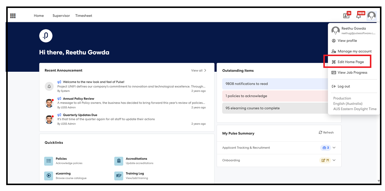 Step 2: Select Edit Home Page Menu.