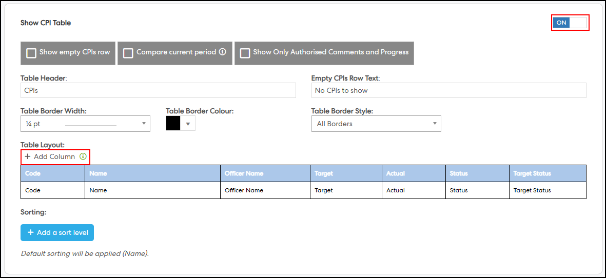 Configuration > Report Content. Enable the Show CPI Table option (if it is not already enabled), then under Table Layout, click Add Column.