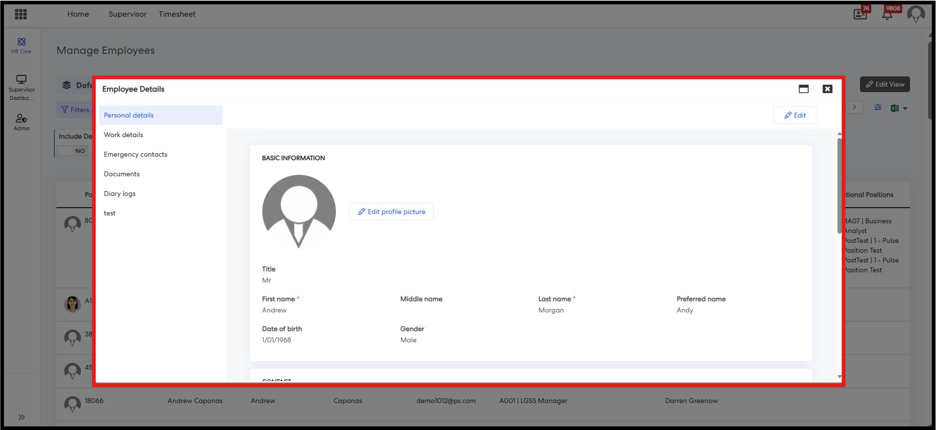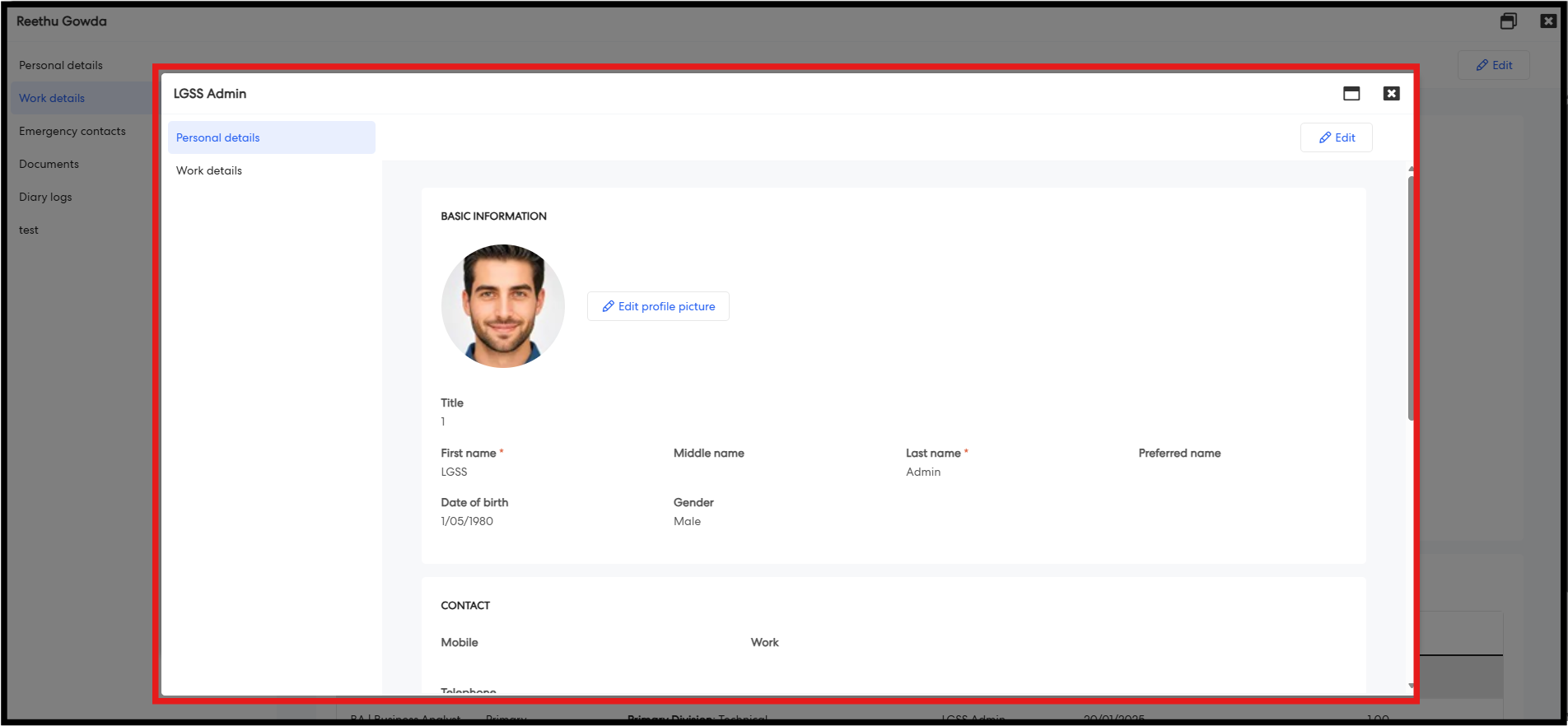 Step 4: The Employee Profile page will load, displaying sections such as Personal and Work Details.