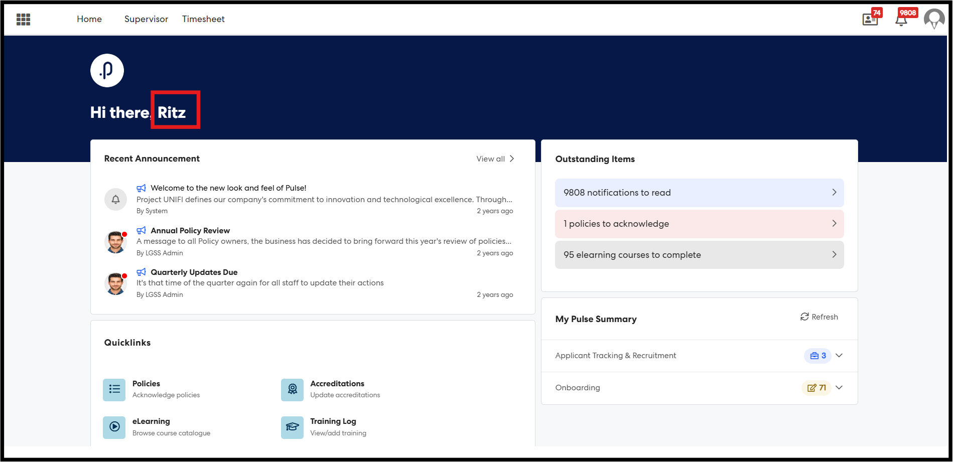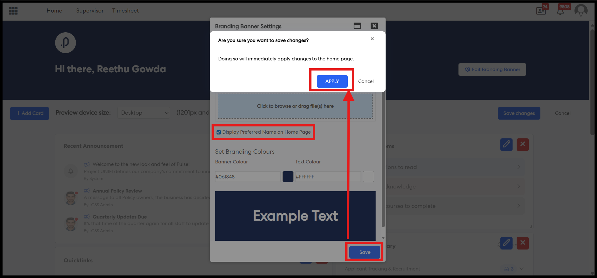 Steps 7: Once the configuration is saved successfully, all users navigating to the Home Page will see their Preferred Name instead of their First Name and Last Name (where available).