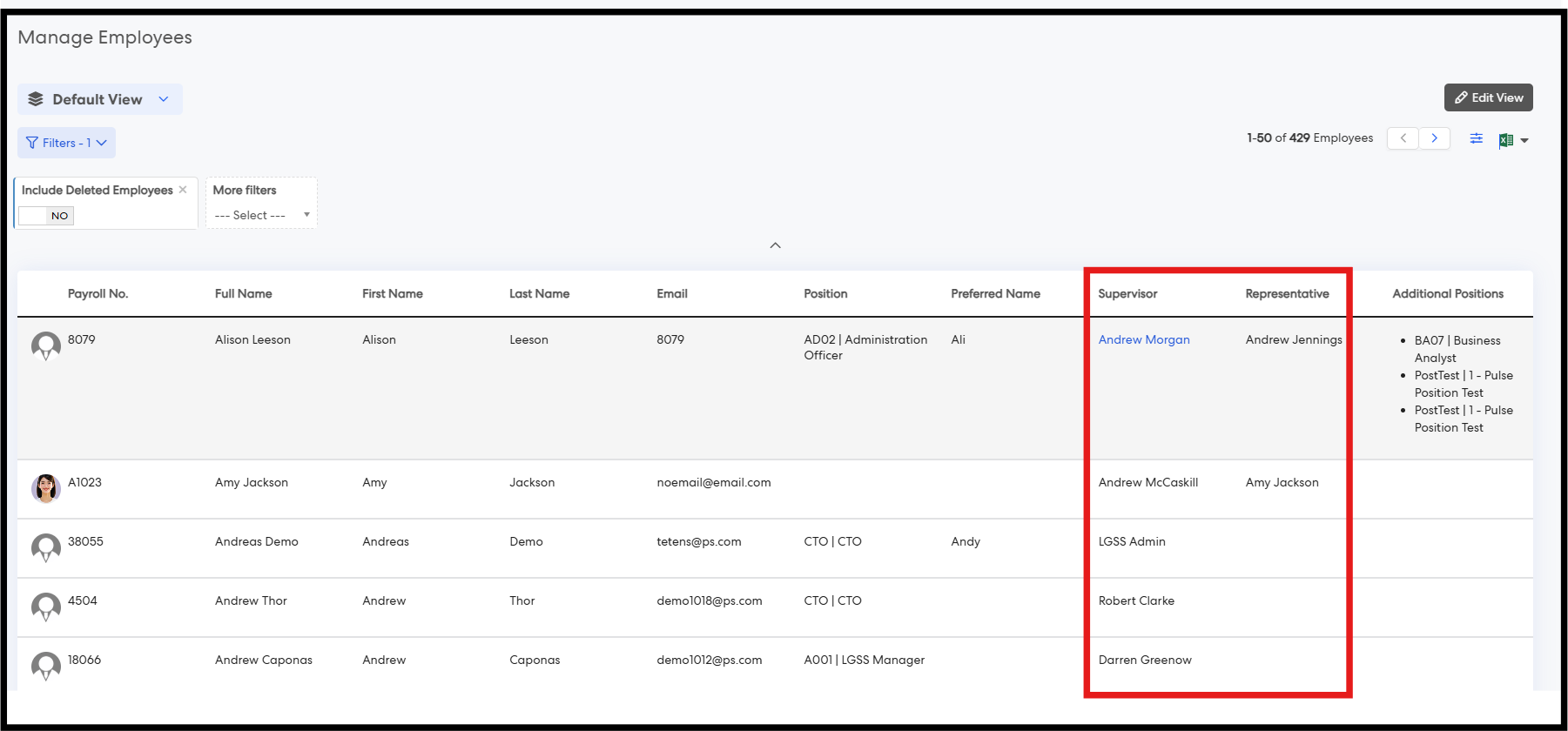 2. Clickable Supervisor and Representative Names in Manage Employees Report