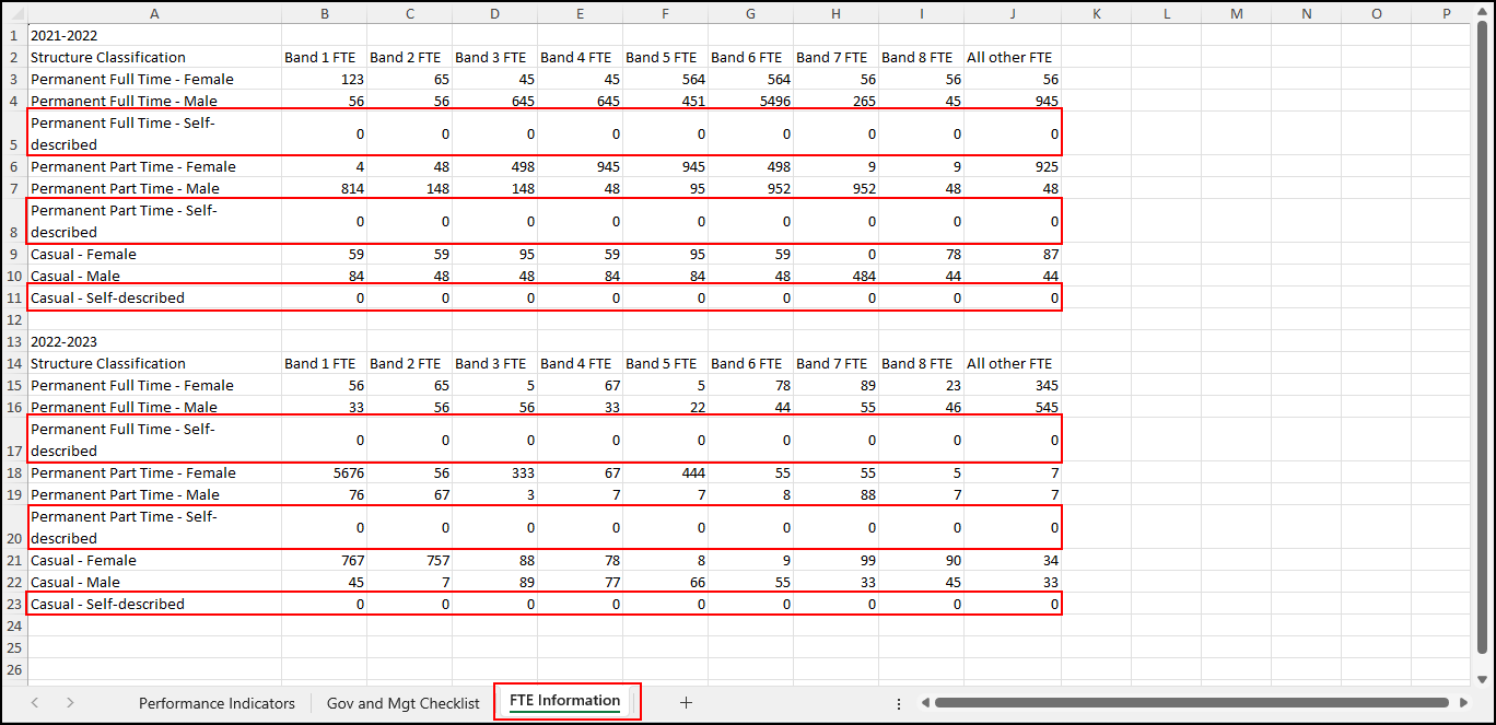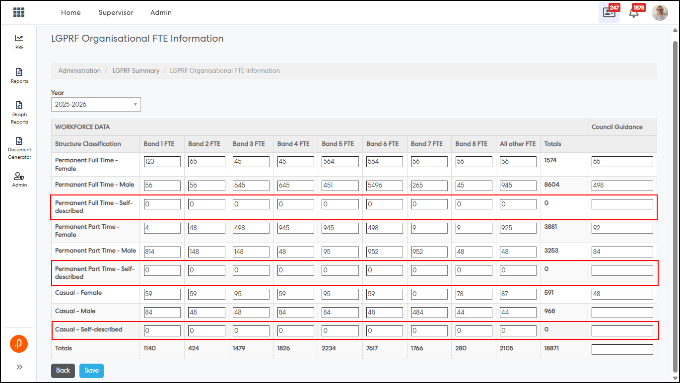 1. Added a new “Self-described” gender category in LGPRF Organisational FTE Information: