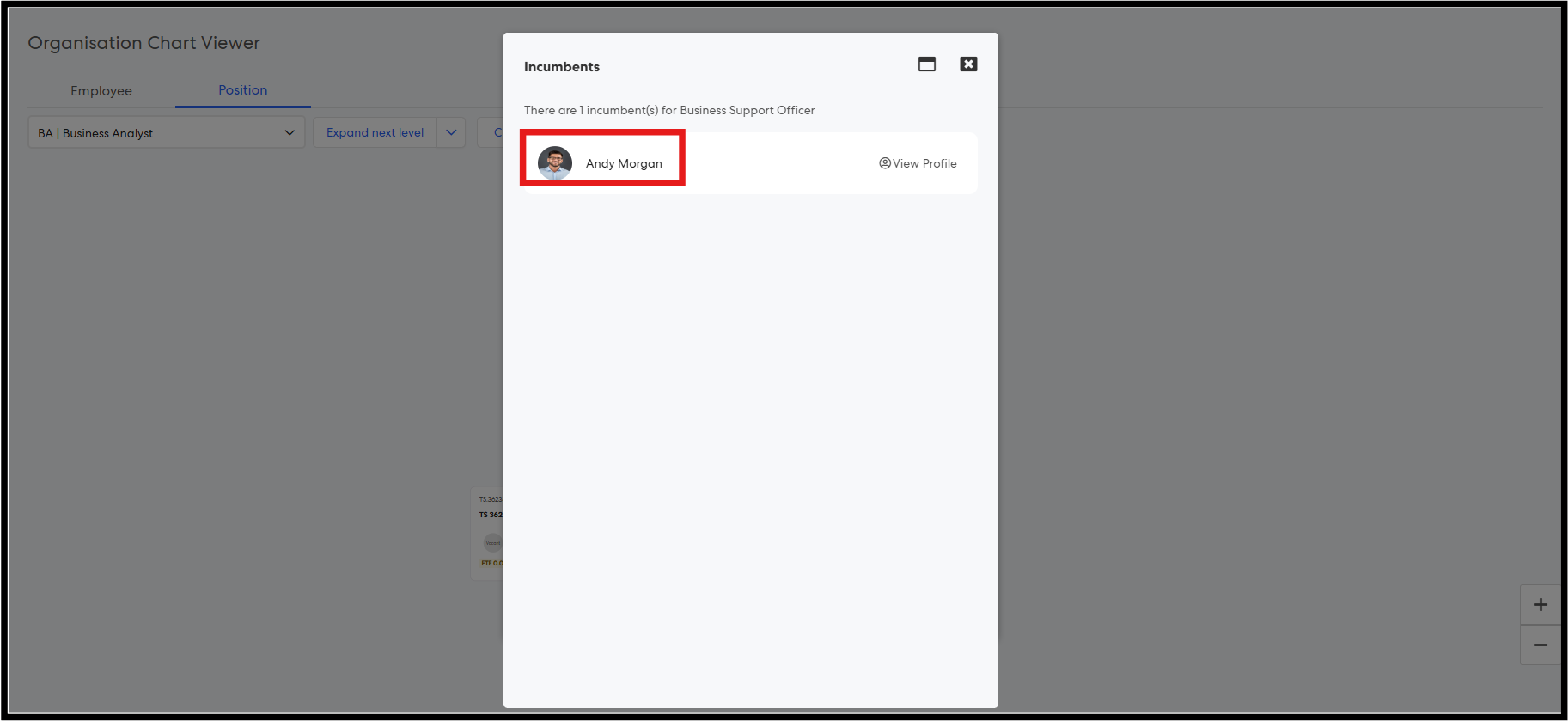 Step 10: The Incumbents popup will display a list of users holding that position, with names shown as Preferred Name + Last Name.