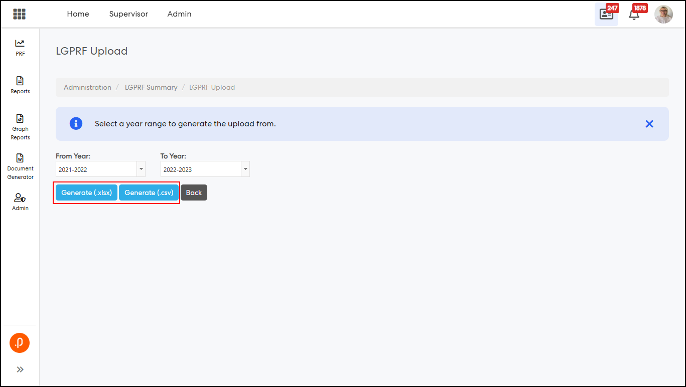 Step 3: Navigate to LGPRF Upload and download the extract (Excel/CSV).