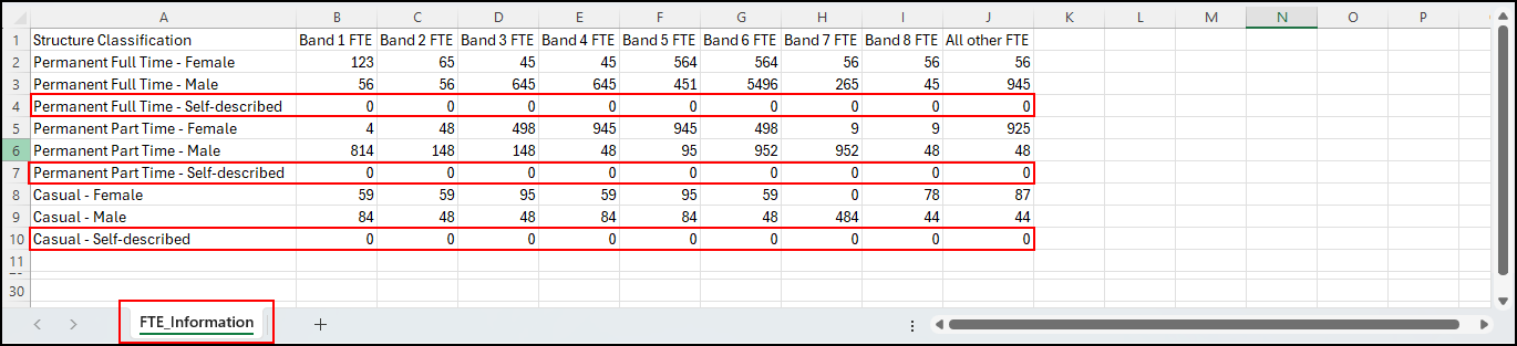 Step 4: Verify that the Self-described rows are included in the FTE Information tab/file